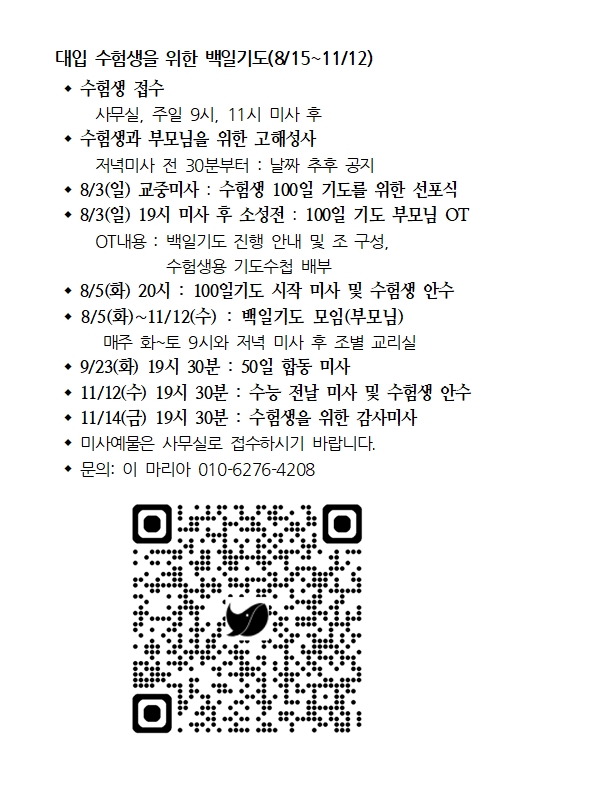 대입 수험생을 위한 백일기도(8/15~11/12) 페이지 정보 작성자 사무실 댓글 0건 조회Hit 444회 작성일Date 25-06-19 14:08 본문 대입 수험생을 위한 백일기도(8/15~11/12) 목록 이전글목동성당 송년 음악회 연주자 모집 25.06.19 다음글미사 중 녹음, 녹화 금지합니다. 25.06.12 댓글목록 댓글목록 등록된 댓글이 없습니다.