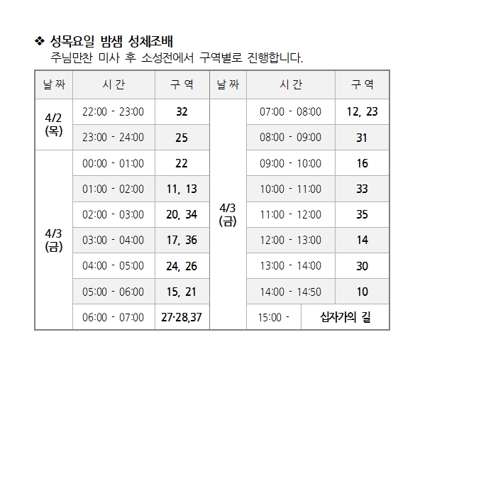 성목요일 밤샘 성체조배 페이지 정보 작성자 사무실 댓글 0건 조회Hit 3회 작성일Date 26-03-26 13:49 본문 성목요일 밤샘 성체조배 목록 이전글파스카 성삼일 전례 26.03.26 다음글전입교우 환영식 26.03.19 댓글목록 댓글목록 등록된 댓글이 없습니다.