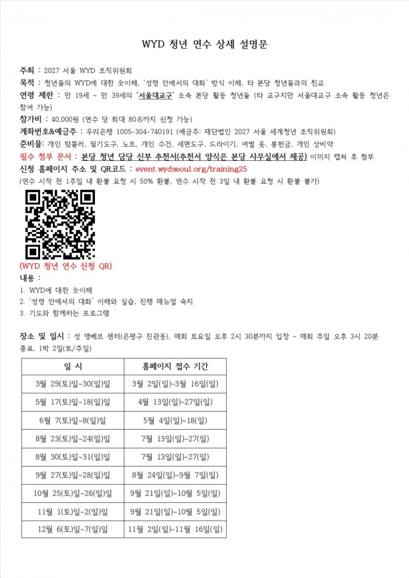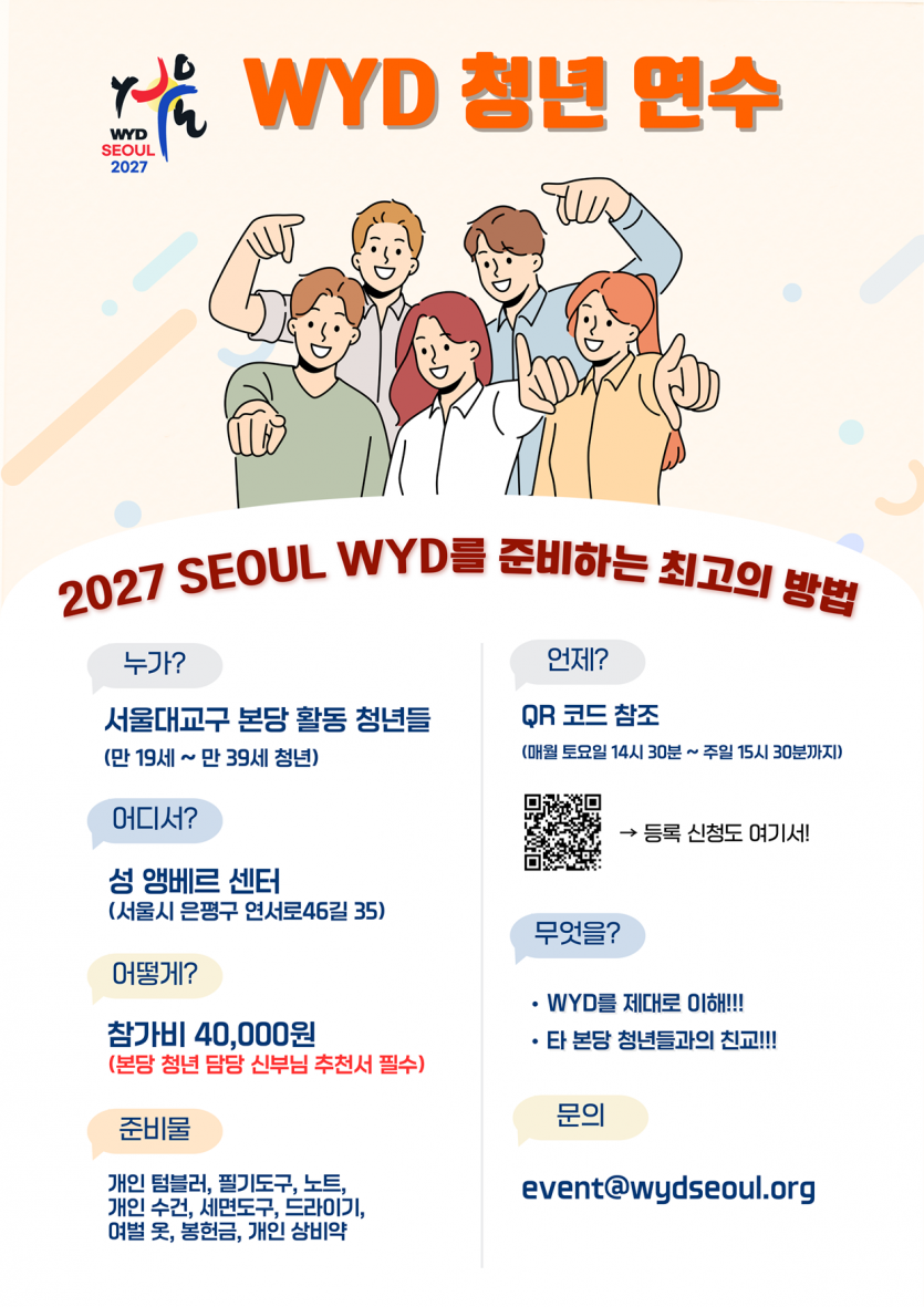 [청년-WYD 조직위] WYD 청년 연수(3, 5, 6, 7, 8, 9, 10, 11, 12월)