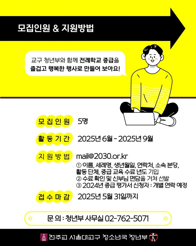 모집신청 : 청년부메일 mail@2030.or.kr/청년부 사무실 02)762-7071