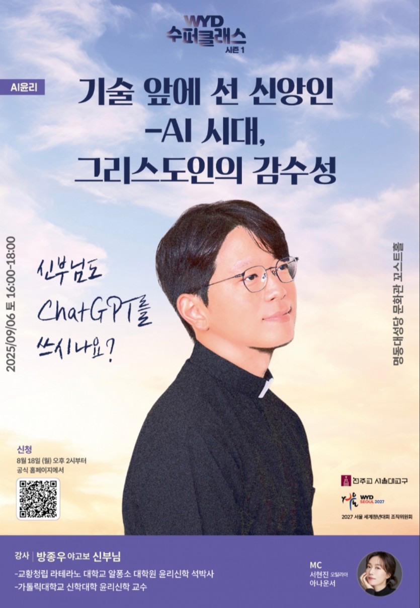 2026년 상반기까지 총 6회가 마련되어 있으며, 첫 강의는 9월 6일(토) 가톨릭대 교수 방중우 신부의 강연으로 시작됩니다.