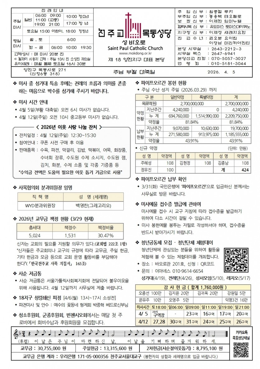 2026 2026년 4월 5일 주님 부활 대축일 페이지 정보 작성자사무실 댓글 0건 작성일Date 26-04-02 16:53 본문 2026년 4월 5일 주님 부활 대축일 검색 목록 이전글2026년 4월 12일 부활 제2주일 곧 하느님의 자비 주일 26.04.09 다음글2026년 3월 29일 주님 수난 성지 주일 26.03.26 댓글목록 댓글목록 등록된 댓글이 없습니다.