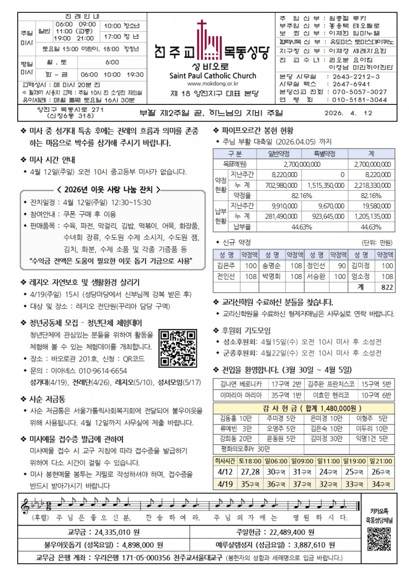 2026 2026년 4월 12일 부활 제2주일 곧 하느님의 자비 주일 페이지 정보 작성자사무실 댓글 0건 작성일Date 26-04-09 14:00 본문 2026년 4월 12일 부활 제2주일 곧 하느님의 자비 주일 검색 목록 이전글2026년 4월 19일 부활 제3주일 26.04.16 다음글2026년 4월 5일 주님 부활 대축일 26.04.02 댓글목록 댓글목록 등록된 댓글이 없습니다.