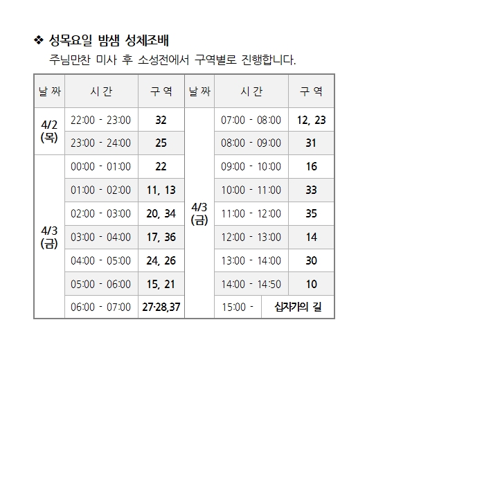 성목요일 밤샘 성체조배 페이지 정보 작성자 사무실 댓글 0건 조회Hit 109회 작성일Date 26-03-19 11:30 본문 성목요일 밤샘 성체조배 목록 이전글아치에스 행사 26.03.19 다음글사순 집중판공성사 26.03.12 댓글목록 댓글목록 등록된 댓글이 없습니다.