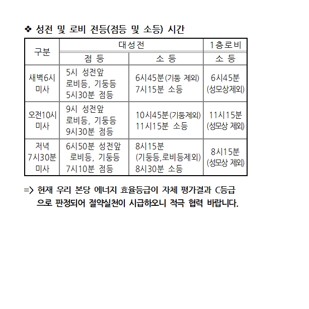 성전 및 로비 전등(점등 및 소등) 시간 페이지 정보 작성자 사무실 댓글 0건 조회Hit 760회 작성일Date 25-07-23 16:33 본문 성전 및 로비 전등(점등 및 소등) 시간 목록 이전글성모승천대축일 미사 25.08.02 다음글미사 중 녹음, 녹화 금지합니다. 25.07.17 댓글목록 댓글목록 등록된 댓글이 없습니다.