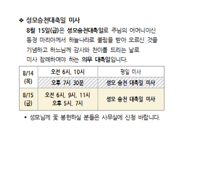 성모승천대축일 미사 페이지 정보 작성자 사무실 댓글 0건 조회Hit 798회 작성일Date 25-08-02 14:54 본문 성모승천대축일 미사 목록 이전글성전 및 로비 전등(점등 및 소등) 시간 25.08.02 다음글성전 및 로비 전등(점등 및 소등) 시간 25.07.23 댓글목록 댓글목록 등록된 댓글이 없습니다.