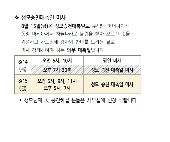 성모승천대축일 미사 페이지 정보 작성자 사무실 댓글 0건 조회Hit 777회 작성일Date 25-08-07 16:27 본문 성모승천대축일 미사 목록 이전글목동성당 송년 음악회 연주자 모집 25.08.14 다음글가족미사 함께 참여하기 운동 25.08.07 댓글목록 댓글목록 등록된 댓글이 없습니다.