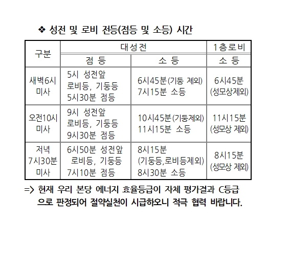 성전 및 로비 전등(점등 및 소등) 시간 페이지 정보 작성자 사무실 댓글 0건 조회Hit 741회 작성일Date 25-08-14 11:38 본문 성전 및 로비 전등(점등 및 소등) 시간 목록 이전글가족미사 함께 참여하기 운동 25.08.14 다음글목동성당 송년 음악회 연주자 모집 25.08.14 댓글목록 댓글목록 등록된 댓글이 없습니다.