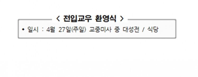 전입교우 환영식 페이지 정보 작성자 사무실 댓글 0건 조회Hit 1,038회 작성일Date 25-04-24 10:57 본문 전입교우 환영식 목록 이전글사무실 휴무(교구공식 휴무일 지정) 25.05.03 다음글5월 성모성월 묵주기도 25.04.24 댓글목록 댓글목록 등록된 댓글이 없습니다.