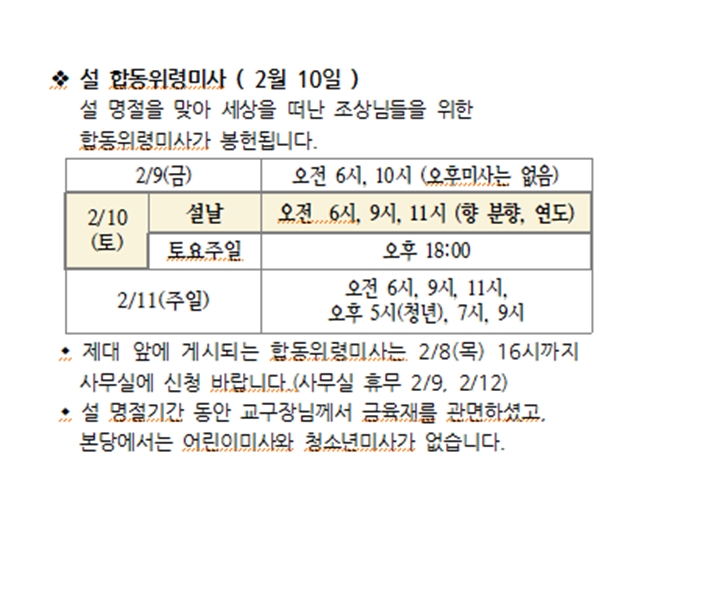 설 합동위령미사 ( 2월 10일 ) 페이지 정보 작성자 사무실 댓글 0건 조회Hit 3,540회 작성일Date 24-02-01 16:33 본문 설 합동위령미사 ( 2월 10일 ) 목록 이전글서성훈 바오로 신부님, 박준영 제피리노 신부님 인사이동 24.02.01 다음글성지(聖枝) 회수 24.02.01 댓글목록 댓글목록 등록된 댓글이 없습니다.