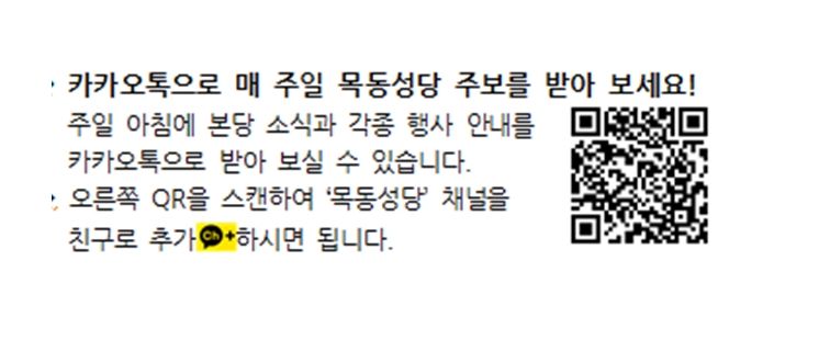카카오톡으로 매 주일 목동성당 주보를 받아 보세요! 페이지 정보 작성자 사무실 댓글 0건 조회Hit 3,640회 작성일Date 24-02-15 13:35 본문 카카오톡으로 매 주일 목동성당 주보를 받아 보세요! 목록 이전글수녀님 인사 이동 24.02.15 다음글서성훈 바오로 신부님, 박준영 제피리노 신부님 인사이동 24.02.08 댓글목록 댓글목록 등록된 댓글이 없습니다.