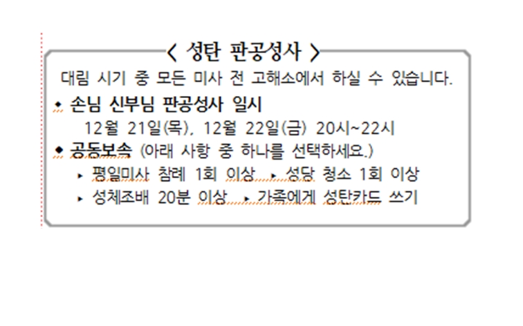 성탄 판공성사 페이지 정보 작성자 사무실 댓글 0건 조회Hit 3,736회 작성일Date 23-12-13 16:00 본문 성탄 판공성사 목록 이전글2차 헌금 23.12.13 다음글2023년 주일학교 성탄제 23.12.13 댓글목록 댓글목록 등록된 댓글이 없습니다.