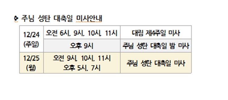 주님 성탄 대축일 미사안내 페이지 정보 작성자 사무실 댓글 0건 조회Hit 3,515회 작성일Date 23-12-06 13:58 본문 주님 성탄 대축일 미사안내 목록 이전글성탄 판공성사 23.12.06 다음글2023년 주일학교 성탄제 23.12.06 댓글목록 댓글목록 등록된 댓글이 없습니다.