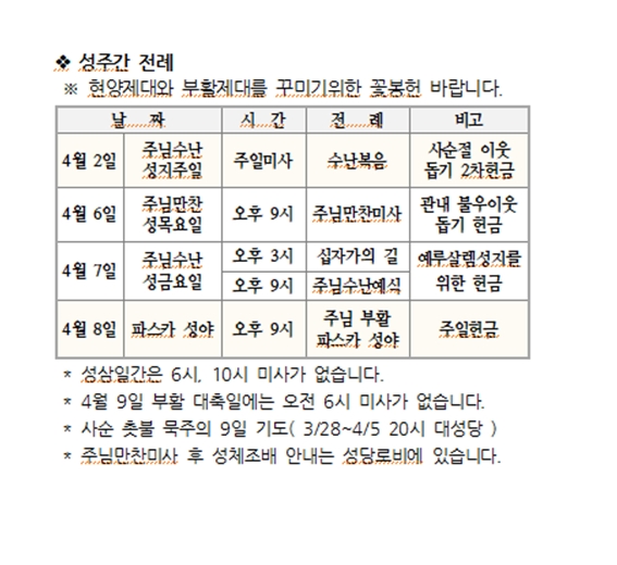 성주간 전례 페이지 정보 작성자 사무실 댓글 0건 조회Hit 4,400회 작성일Date 23-03-22 14:26 본문 성주간 전례 목록 이전글사순절 신앙 실천 23.03.22 다음글부활맞이 한마음 잔치(윷놀이) 23.03.22 댓글목록 댓글목록 등록된 댓글이 없습니다.