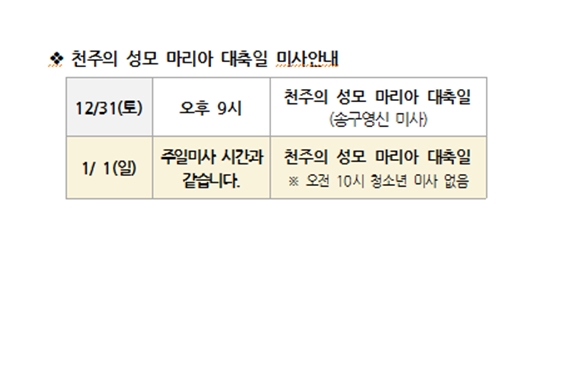 천주의 성모 마리아 대축일 미사안내 페이지 정보 작성자 사무실 댓글 0건 조회Hit 4,975회 작성일Date 22-12-29 10:02 본문 천주의 성모 마리아 대축일 미사안내 목록 이전글사제 수품자를 위한 54일 기도 22.12.29 다음글설 합동위령미사 및 신년 하례식 22.12.29 댓글목록 댓글목록 등록된 댓글이 없습니다.