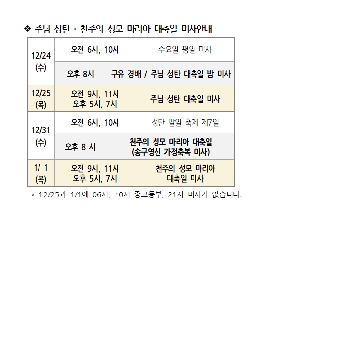 주님 성탄 · 천주의 성모 마리아 대축일 미사안내 페이지 정보 작성자 사무실 댓글 0건 조회Hit 556회 작성일Date 25-12-04 18:13 본문 주님 성탄 · 천주의 성모 마리아 대축일 미사안내 목록 이전글대림 판공성사 25.12.04 다음글12월 첫 첨례 안내 25.11.28 댓글목록 댓글목록 등록된 댓글이 없습니다.