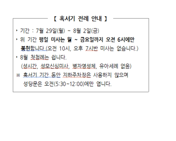혹서기 전례 안내