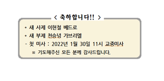 축하합니다!! 페이지 정보 작성자 사무실 댓글 0건 조회Hit 4,538회 작성일Date 22-01-27 09:59 본문 축하합니다!! 목록 이전글성지(聖枝) 회수 22.02.03 다음글2차 헌금 22.01.27 댓글목록 댓글목록 등록된 댓글이 없습니다.