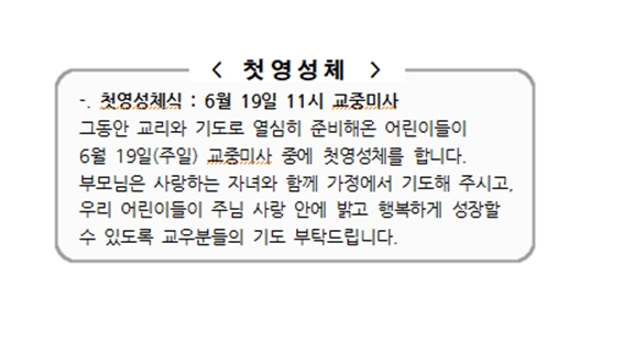 첫영성체식 : 6월 19일 11시 교중미사 페이지 정보 작성자 사무실 댓글 0건 조회Hit 4,405회 작성일Date 22-06-15 13:35 본문 첫영성체식 : 6월 19일 11시 교중미사 목록 이전글2차 헌금 22.06.15 다음글사제 성화의 날 22.06.15 댓글목록 댓글목록 등록된 댓글이 없습니다.