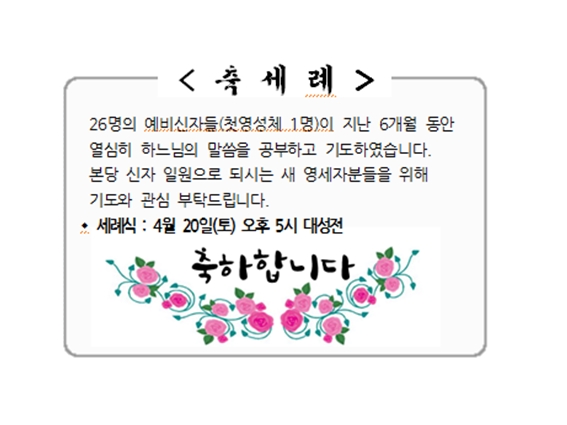 축 세 례 페이지 정보 작성자 사무실 댓글 0건 조회Hit 3,079회 작성일Date 24-04-09 17:26 본문 축 세 례 목록 이전글첫영성체 일정 안내 24.04.17 다음글태아 축복예식 24.04.09 댓글목록 댓글목록 등록된 댓글이 없습니다.