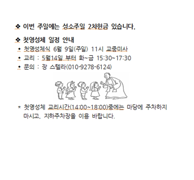 첫영성체 일정 안내 페이지 정보 작성자 사무실 댓글 0건 조회Hit 3,063회 작성일Date 24-04-17 14:21 본문 첫영성체 일정 안내 목록 이전글주 ․ 정차 위반 단속 안내 24.04.17 다음글축 세 례 24.04.09 댓글목록 댓글목록 등록된 댓글이 없습니다.