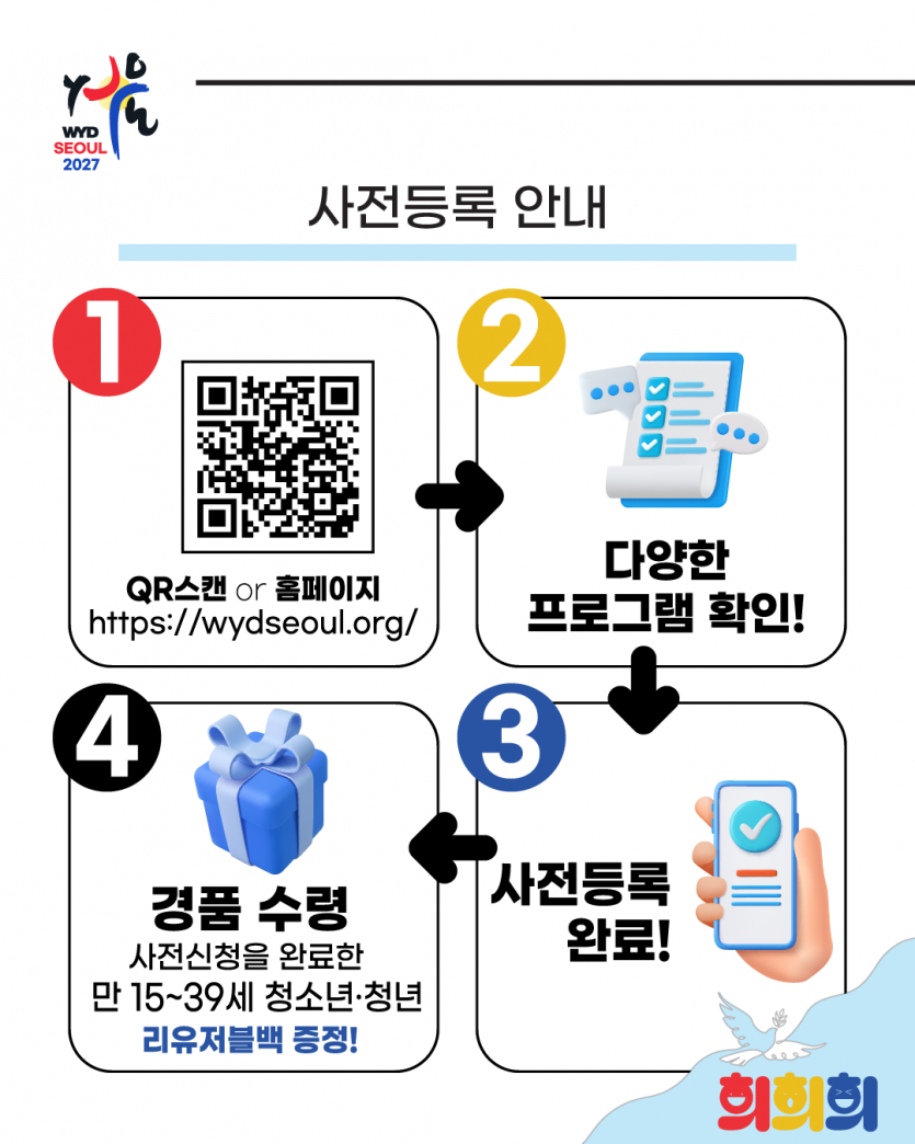 5. 사전등록 : QR 스캔 혹은 링크(https://play.congkong.net/wydseoul/registration)
