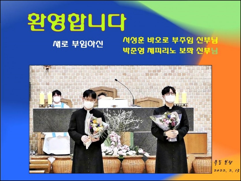 신부님 환영 페이지 정보 작성자 김사도요한 댓글 0건 조회Hit 1,933회 작성일Date 22-02-14 08:33 본문 환영합니다 새로 부임하신 두분의 신부님 ! 목록 이전글수녀님 송별 22.02.15 다음글신부님 송별 22.02.08 댓글목록 댓글목록 등록된 댓글이 없습니다.