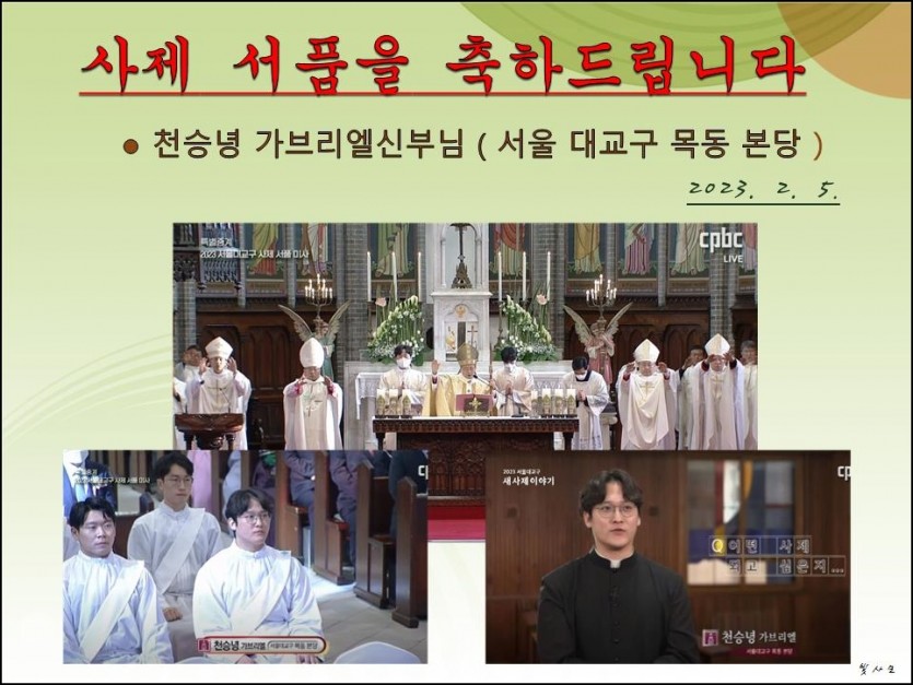 사제 서품을 축하합니다 페이지 정보 작성자 김사도요한 댓글 0건 조회Hit 1,997회 작성일Date 23-02-05 09:21 본문 사제 서품을 축하드립니다. 목록 이전글수녀님 환영 23.02.26 다음글신년 축하 23.01.01 댓글목록 댓글목록 등록된 댓글이 없습니다.