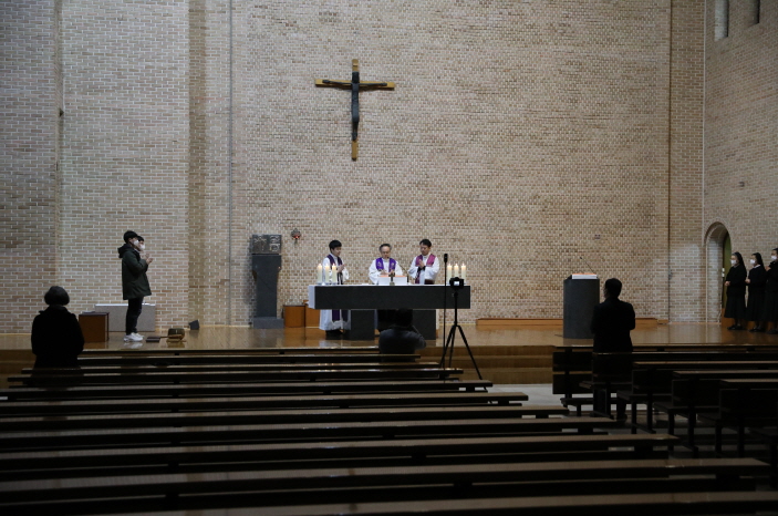 코로나19 바이러스 위험으로 교우님들은 참석하지 못하였지만 신부님들께서 미사를 집전하셨습니다. 추가사진은 네이버 빛사모카페에서 회원등록 후 감상하실 수 있습니다. 카페주소 https://cafe.naver.com/mtcpic