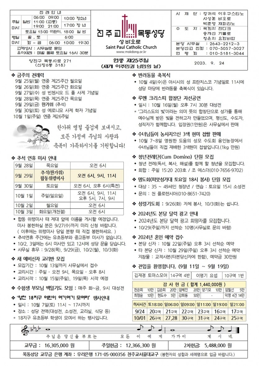 2023 2023년 9월 24일 세계 이주민과 난민의 날, 연중 제25주일