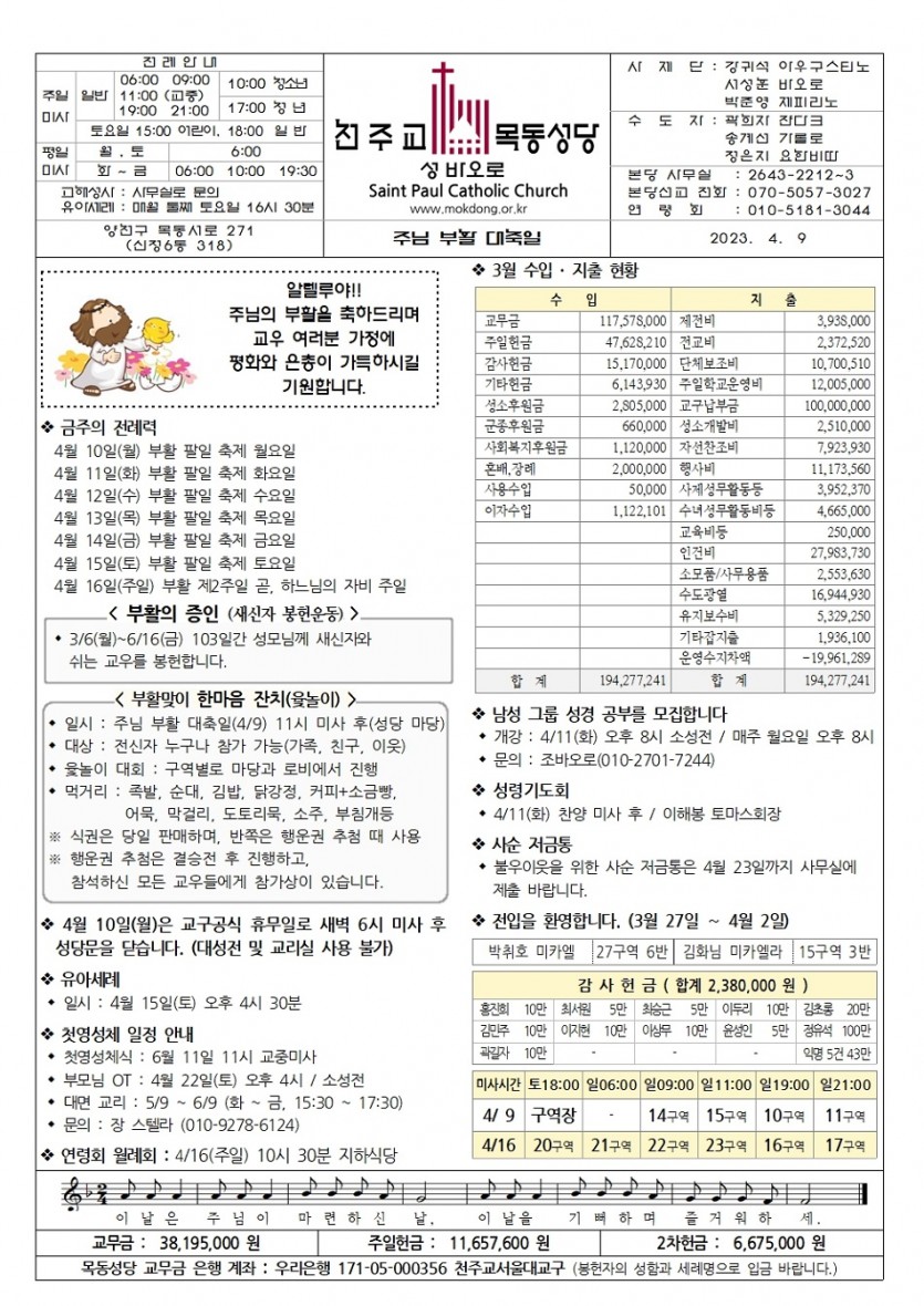 2023 2023년 4월 9일 주님 부활 대축일 페이지 정보 작성자사무실 댓글 0건 작성일Date 23-04-06 10:00 본문 2023년 4월 9일 주님 부활 대축일 목록 이전글2023년 4월 16일 부활 제2주일 곧, 하느님의 자비 주일 23.04.13 다음글2023년 4월 2일 주님 수난 성지 주일 23.03.29 댓글목록 댓글목록 등록된 댓글이 없습니다.