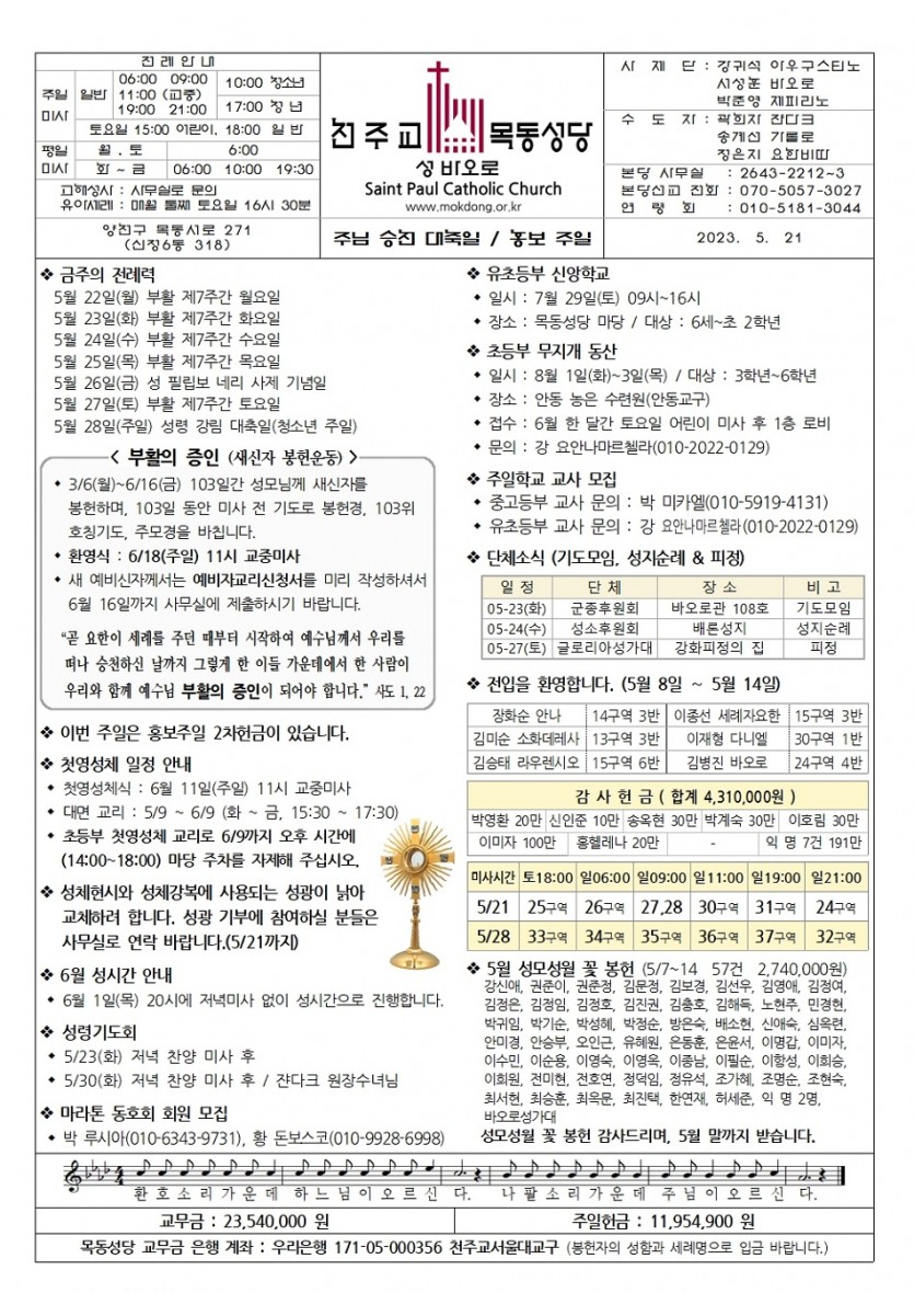 2023 2023년 5월 21일 홍보주일, 주님 승천 대축일 페이지 정보 작성자사무실 댓글 0건 작성일Date 23-05-18 09:37 본문 2023년 5월 21일 홍보주일, 주님 승천 대축일 목록 이전글2023년 5월 28일 청소년 주일, 성령 강림 대축일 23.05.24 다음글2023년 5월 14일 부활 제6주일 23.05.11 댓글목록 댓글목록 등록된 댓글이 없습니다.