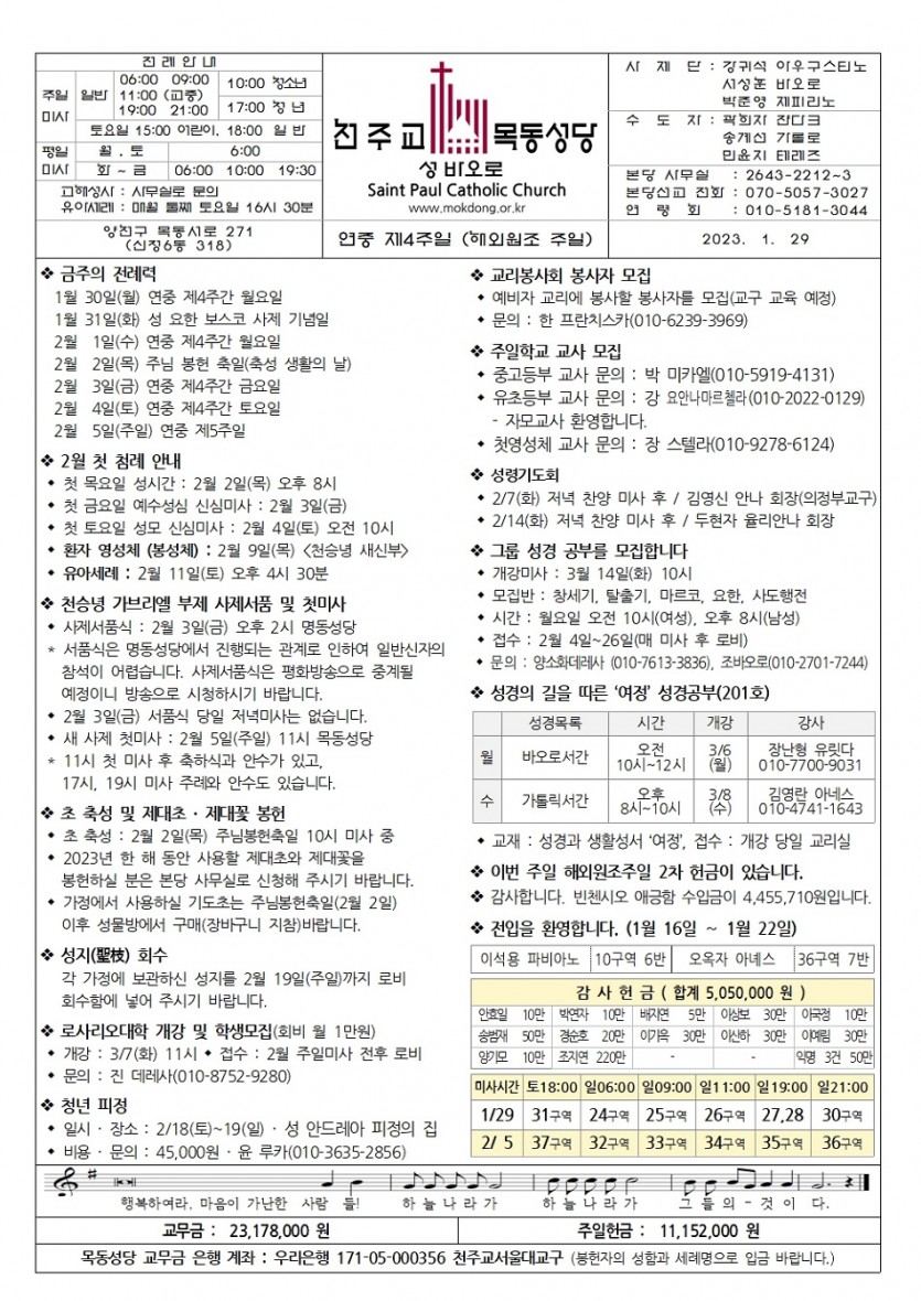 2023 2023년 1월 29일 연중 제4주일. 해외 원조 주일 페이지 정보 작성자사무실 댓글 0건 작성일Date 23-01-26 09:39 본문 2023년 1월 29일 연중 제4주일. 해외 원조 주일 목록 이전글2023년 2월 5일 연중 제5주일 23.02.02 다음글2023년 1월 22일 설. 하느님의 말씀 주일 23.01.18 댓글목록 댓글목록 등록된 댓글이 없습니다.