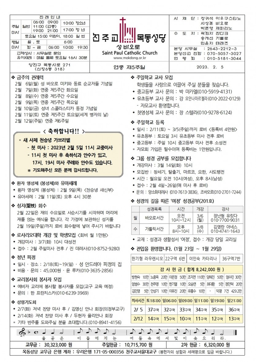2023 2023년 2월 5일 연중 제5주일 페이지 정보 작성자사무실 댓글 0건 작성일Date 23-02-02 10:30 본문 2023년 2월 5일 연중 제5주일 목록 이전글2023년 2월 12일 연중 제6주일 23.02.08 다음글2023년 1월 29일 연중 제4주일. 해외 원조 주일 23.01.26 댓글목록 댓글목록 등록된 댓글이 없습니다.