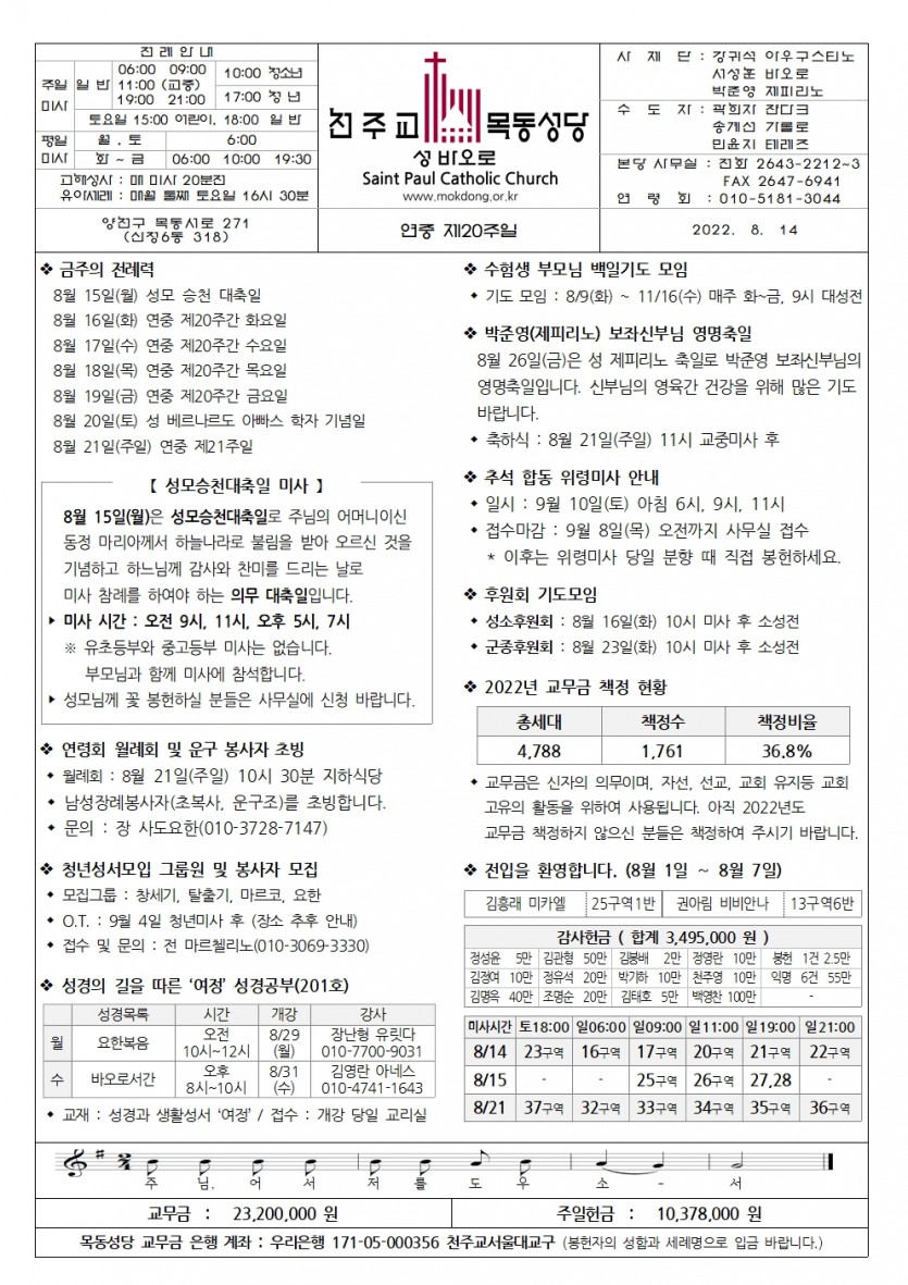2022 2022년 8월 14일 연중20주일 페이지 정보 작성자사무실 댓글 0건 작성일Date 22-08-11 15:38 본문 2022년 8월 14일 연중20주일 목록 이전글2022년 8월 21일 연중 제21주일 22.08.18 다음글2022년 8월 7일 연중 제19주일 22.08.04 댓글목록 댓글목록 등록된 댓글이 없습니다.
