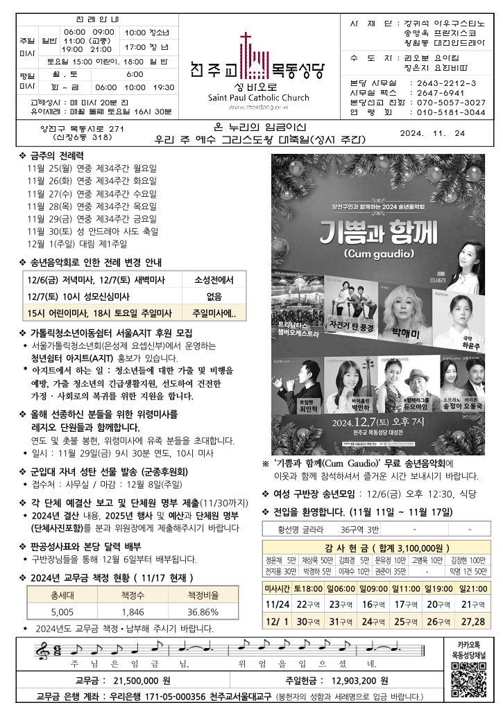 2024 2024년 11월 24일 온누리의 임금이신 우리 주 예수 그리스도 왕 대축일 페이지 정보 작성자사무실 댓글 0건 작성일Date 25-09-26 14:19 본문 2024년 11월 24일 온누리의 임금이신 우리 주 예수 그리스도 왕 대축일 목록 이전글2025년 10월 5일 연중 제27주일 25.10.02 다음글2025년 9월 28일 연중 제26주일 (세계 이주민과 난민의 날) 25.09.25 댓글목록 댓글목록 등록된 댓글이 없습니다.