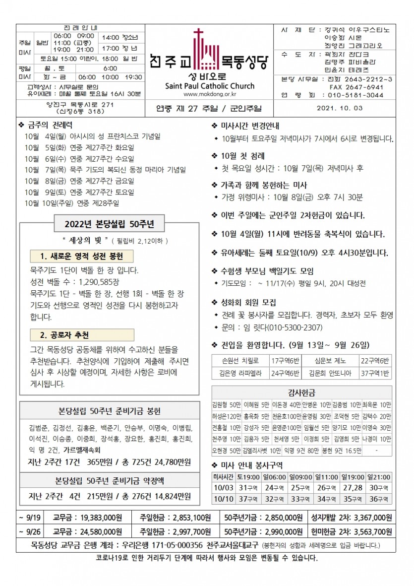 2021 2021년 10월 3일 연중 제27주일 군인주일