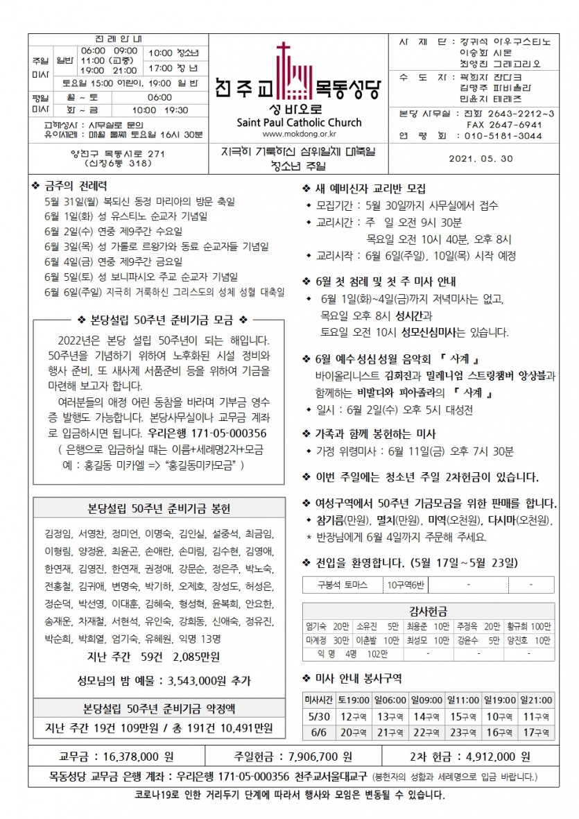 2021 2021년 5월 30일 지극히 거룩하신 삼위일체 대축일, 청소년 주일 페이지 정보 작성자사무실 댓글 0건 작성일Date 21-05-27 14:16 본문 2021년 5월 30일 지극히 거룩하신 삼위일체 대축일, 청소년 주일 목록 이전글2021년 6월 6일 지극히 거룩하신 그리스도의 성체 성혈 대축일 21.06.03 다음글2021년 5월 23일 성령 강림 대축일 21.05.20 댓글목록 댓글목록 등록된 댓글이 없습니다.