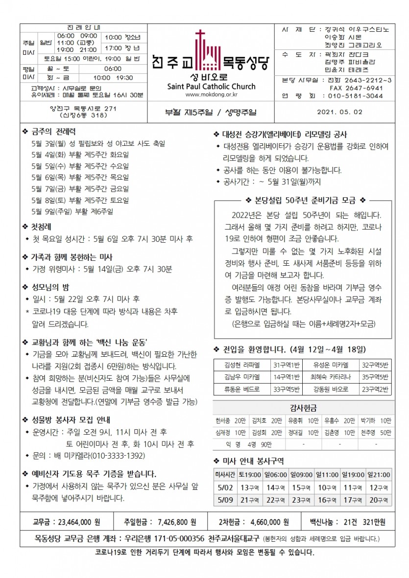 2021 2021년 5월 2일 부활 제5주일 생명주일 페이지 정보 작성자사무실 댓글 0건 작성일Date 21-04-29 16:54 본문 2021년 5월 2일 부활 제5주일 생명주일 목록 이전글2021년 5월 9일 부활 제6주일 21.05.06 다음글2021년 4월 25일 부활 제4주일 성소주일 21.04.22 댓글목록 댓글목록 등록된 댓글이 없습니다.