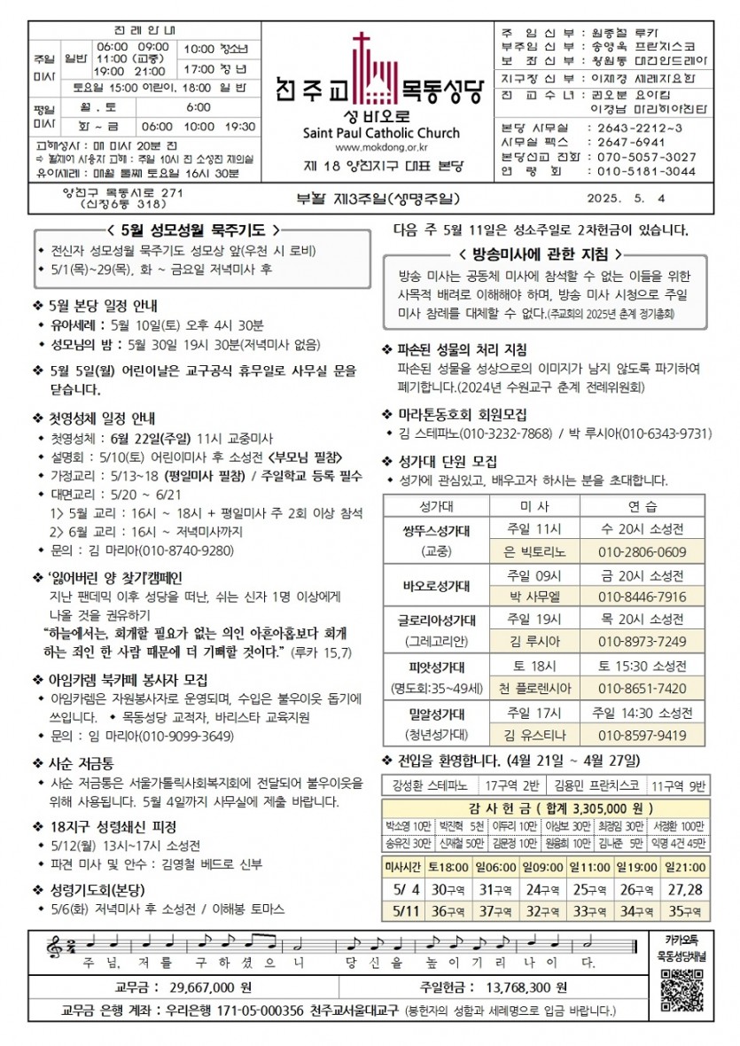 2025 2025년 5월 4일 부활 제3주일. 생명 주일