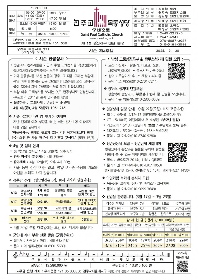 2025 2025년 3월 30일 사순 제4주일 페이지 정보 작성자사무실 댓글 0건 작성일Date 25-03-27 11:14 본문 2025년 3월 30일 사순 제4주일 목록 이전글2025년 4월 6일 사순 제5주일 25.04.03 다음글2025년 3월 23일 사순 제3주일 25.03.20 댓글목록 댓글목록 등록된 댓글이 없습니다.