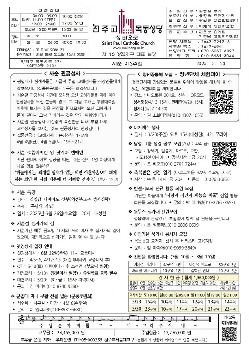2025 2025년 3월 23일 사순 제3주일 페이지 정보 작성자사무실 댓글 0건 작성일Date 25-03-20 13:43 본문 2025년 3월 23일 사순 제3주일 목록 이전글2025년 3월 30일 사순 제4주일 25.03.27 다음글2025년 3월 16일 사순 제2주일 25.03.13 댓글목록 댓글목록 등록된 댓글이 없습니다.