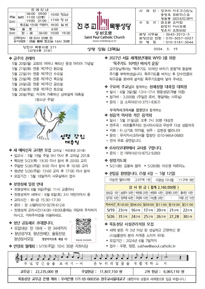2024 2024년 5월 19일 성령 강림 대축일 페이지 정보 작성자사무실 댓글 0건 작성일Date 24-05-16 13:59 본문 2024년 5월 19일 성령 강림 대축일 목록 이전글2024년 5월 26일 지극히 거룩하신 삼위일체 대축일. 청소년주일 24.05.23 다음글2024년 5월 12일 주님 승천 대축일. 홍보 주일 24.05.09 댓글목록 댓글목록 등록된 댓글이 없습니다.