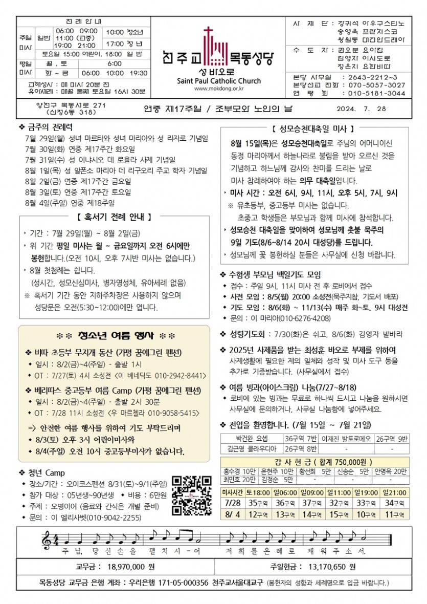 2024 23024년 7월 28일 연중 제17주일. 조부모와 노인의 날 페이지 정보 작성자사무실 댓글 0건 작성일Date 24-07-24 14:40 본문 23024년 7월 28일 연중 제17주일. 조부모와 노인의 날 목록 이전글목동주보_2024_08_04_연중 제18주일 24.08.01 다음글2024년 7월 21일 연중 제16주일. 농민 주일 24.07.17 댓글목록 댓글목록 등록된 댓글이 없습니다.