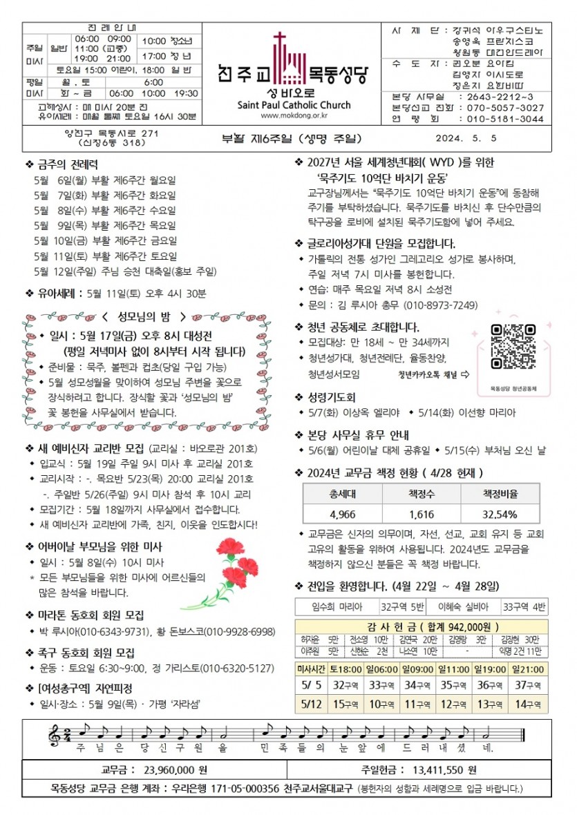 2024 2024년 5월 5일 부활 제6주일. 생명주일 페이지 정보 작성자사무실 댓글 0건 작성일Date 24-05-01 11:20 본문 2024년 5월 5일 부활 제6주일. 생명주일 목록 이전글2024년 5월 12일 주님 승천 대축일. 홍보 주일 24.05.09 다음글2024년 4월 28일 부활 제5주일 24.04.25 댓글목록 댓글목록 등록된 댓글이 없습니다.