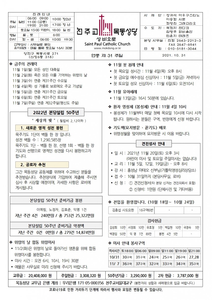 2021 2021년 10월 31일 연중 제31주일 페이지 정보 작성자사무실 댓글 0건 작성일Date 21-10-28 09:18 본문 2021년 10월 31일 연중 제31주일 검색 목록 이전글2021년 11월 7일 연중 제32주일 평신도주일 21.11.04 다음글2021년 10월 24일 연중 제30주일 전교주일 21.10.21 댓글목록 댓글목록 등록된 댓글이 없습니다.