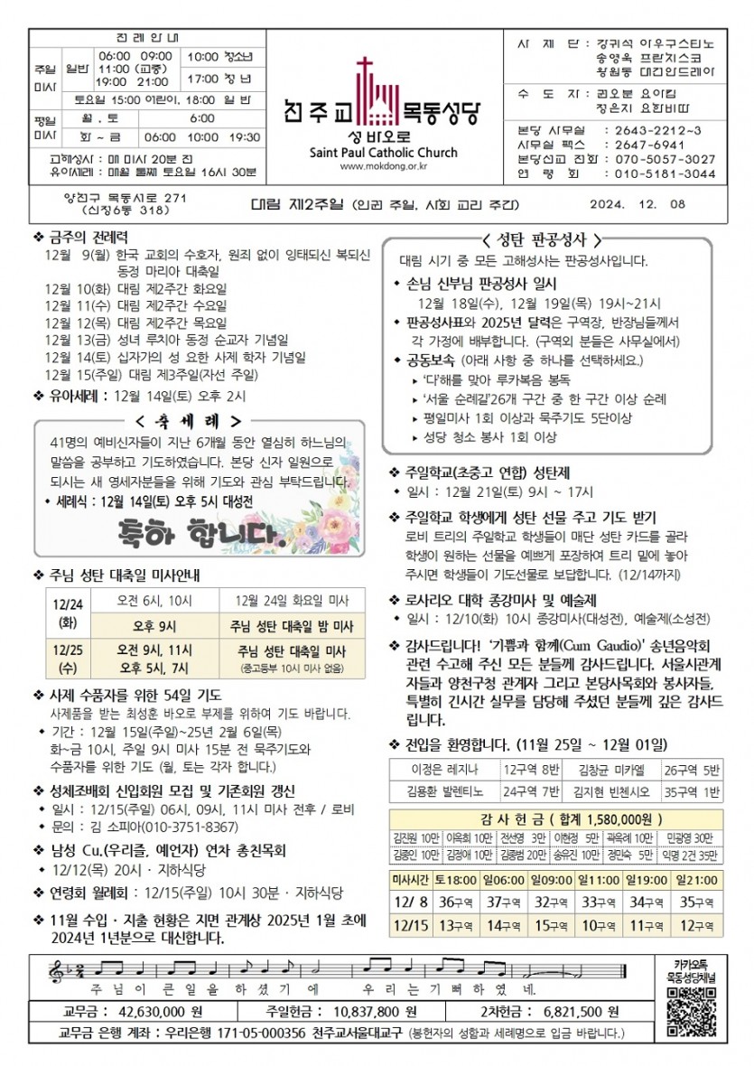 2024 2024년 12월 8일 대림 제2주일. 인권 주일. 사회 교리 주간(~14일) 페이지 정보 작성자사무실 댓글 0건 작성일Date 24-12-05 09:22 본문 2024년 12월 8일 대림 제2주일. 인권 주일. 사회 교리 주간(~14일) 검색 목록 이전글2024년 12월 15일 대림 제3주일. 자선 주일 24.12.12 다음글2024년 12월 1일 대림 제1주일 24.11.28 댓글목록 댓글목록 등록된 댓글이 없습니다.