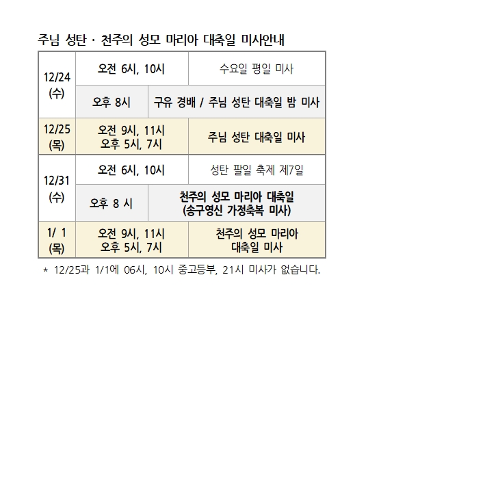 주님 성탄 · 천주의 성모 마리아 대축일 미사안내 페이지 정보 작성자 사무실 댓글 0건 조회Hit 556회 작성일Date 25-12-11 13:31 본문 주님 성탄 · 천주의 성모 마리아 대축일 미사안내 목록 이전글빈첸시오회 애긍함 설치 25.12.11 다음글성체조배회 신입회원 모집 및 기존회원 갱신 25.12.11 댓글목록 댓글목록 등록된 댓글이 없습니다.