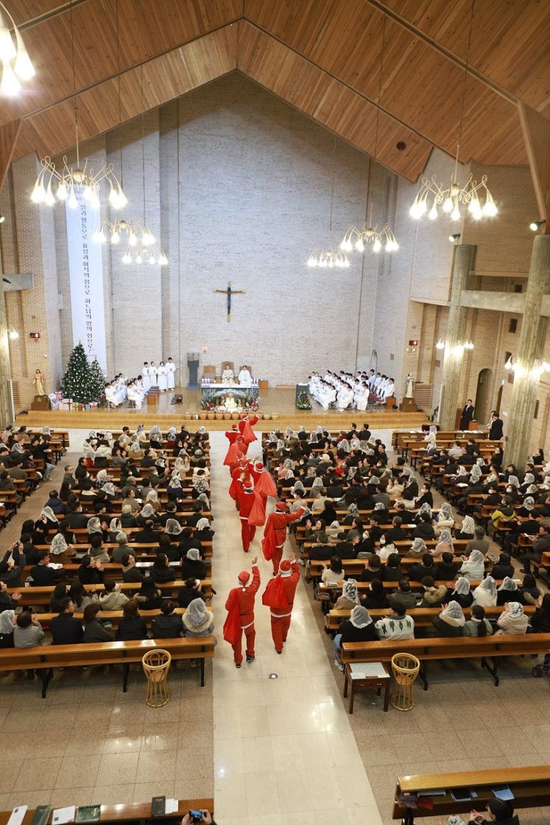 하느님께서 여러분들, 우리 본당, 모든 분들에게 성탄을 이루시기를 오늘 밤 기도합니다. 교우 여러분 주님의 성탄을 다시 한번 축하드리고 메리 크리스마스입니다. 하고 강론을 짧게 마무리해 주셨습니다.